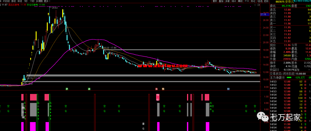 该指标副图设置有多个信号,涉及加仓、清仓信号,加减仓,对于不会加仓、减仓的朋友是个不错的学习机会。除了减仓信号,后面有加仓信号,加一成、加2成仓位,再出部分仓位。当行情走向极端后,清仓。指标仅供大家学习参考。